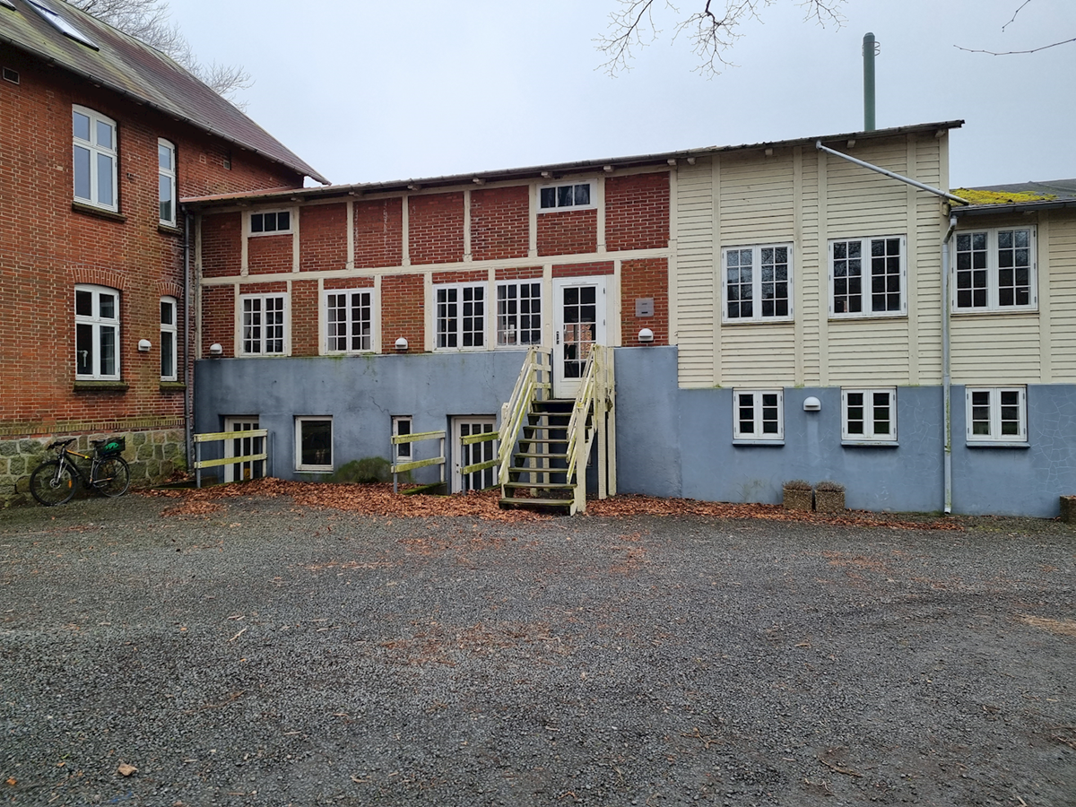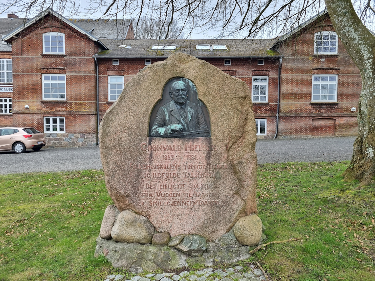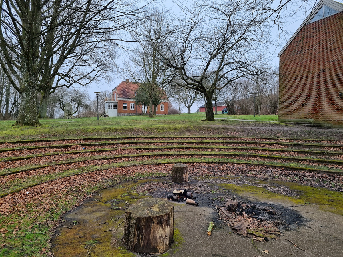 Foran højskolen står en stor blodbøg. Blodbøg blev plantet ved mange højskoler og større gårde i forbindelse med genforeningen i 1920.