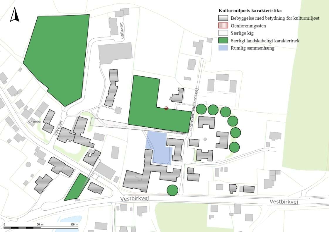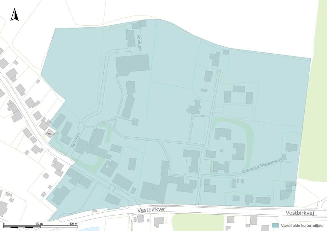 Kulturmiljøet besidder store kulturhistoriske værdier samt en høj grad af integritet. Den lange udviklingshistorie er tydelig i mødet mellem de gamle og nyere byggeriet. De nyere tilføjelser i røde mursten er fint tilpasset det oprindelige miljø. Den tidligere højskole fungerer i dag som musik- og sportsefterskole. Skolerne bidrager til at gøre Vestbirk landsby til et attraktivt bosætningsområde. Efterskolen har udmærkede egenskaber inden for kultur og udgør i dag en platform for kulturformidling for unge.