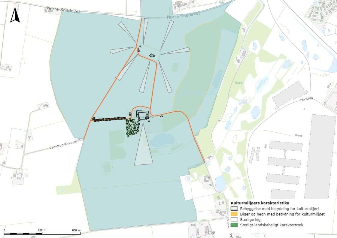 - Landskabet omkring Tamdrup kirke og Bisgård, med vide udsigter på tværs af landskabet