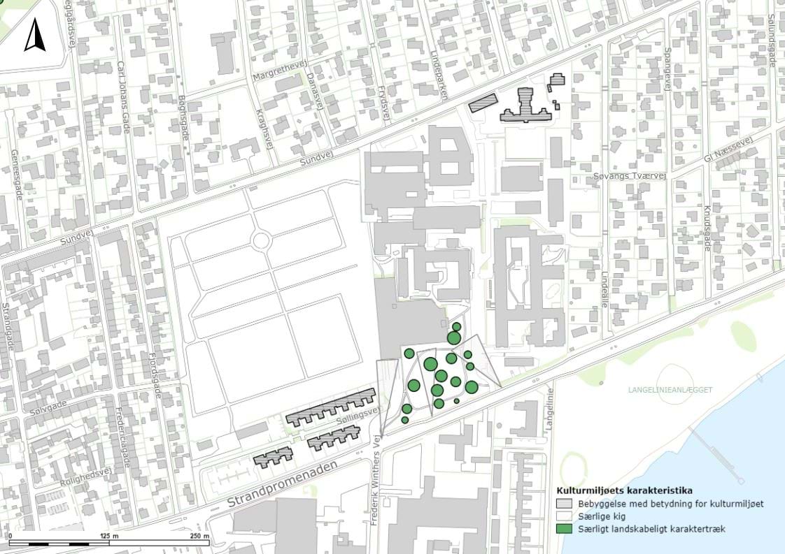 Særlig kig og oplevelsen af sygehusområdet fra Strandpromenaden er sårbar overfor tilsløringer.