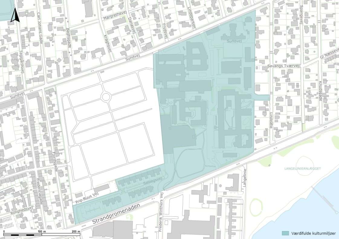 Det ældste sygehuskompleks ved sundvej og lægeboligerne på Prip Bruus vej og Søllingsvej er sårbare overfor ændringer og tilbygninger, der forandrer bygningernes oprindelige form og skala.