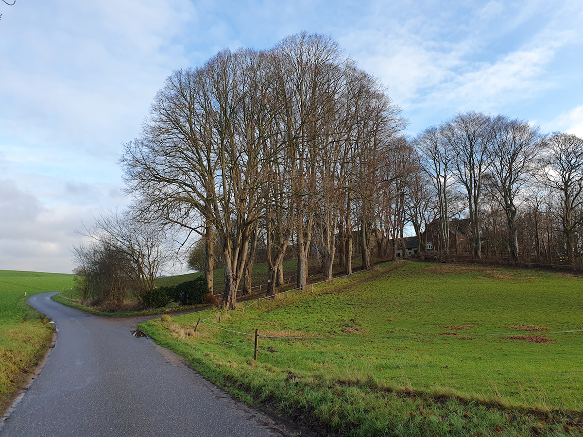 Byens spredte træbeplantning, blandt andet i form af store solitære træer, understreger både det snoede gadeforløb og det kuperede landsbylandskab. Flere steder er træerne rumskabende elementer og deres krone opleves som et tag, der ”beskytter” og afgrænser byen mod det åbne land. Samtidig begrænser de indkigget til selve byen.