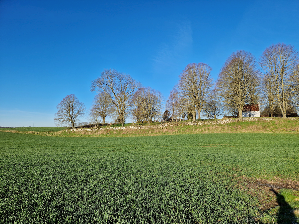 Kig fra Nordre Strandvej understreger kirken som markør i landsbyen og er sårbar overfor ændringer.