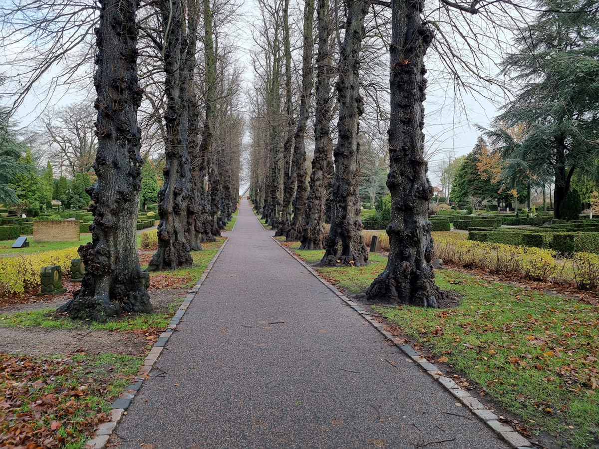 Den markante allé er et karakteristisk træk som understreger kirkegården opbygning omkring en akse. Træerne er sårbare overfor fældning.