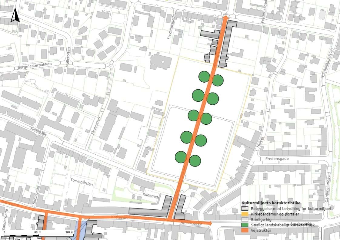 Bebyggelse omkring Kirkegårdsallé og Nrd. Kirkegårdsallé understøtter kirkegårdens kobling til den urbane kontekst og oplevelsen i mødet mellem byens tætte gader og kirkegårdens åbne landskabsrum. Bygningerne er sårbare overfor ændringer i arkitektur, struktur og skala.