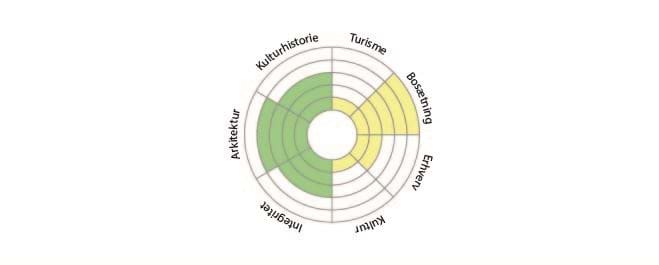 Bebyggelsen med betydning for kulturmiljøet er definerende for miljøets fortælling om nærhed til naturen. Bygningerne er sårbare overfor ændringer i arkitektur, rytme og skala.