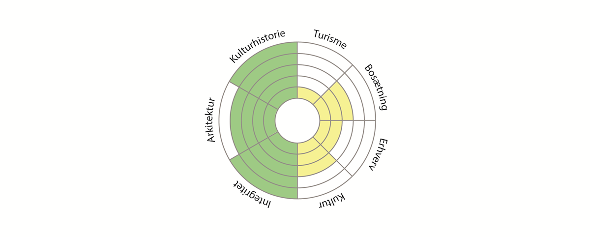 Kulturmiljøet fremstår intakt. Bygningerne er privatejet beboelse, tegnet til den funktion, og vil have det mest optimale potentiale som beboelse.