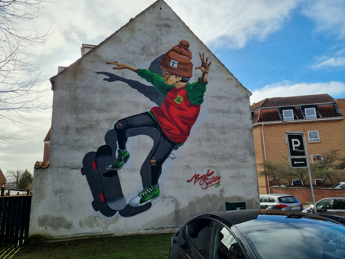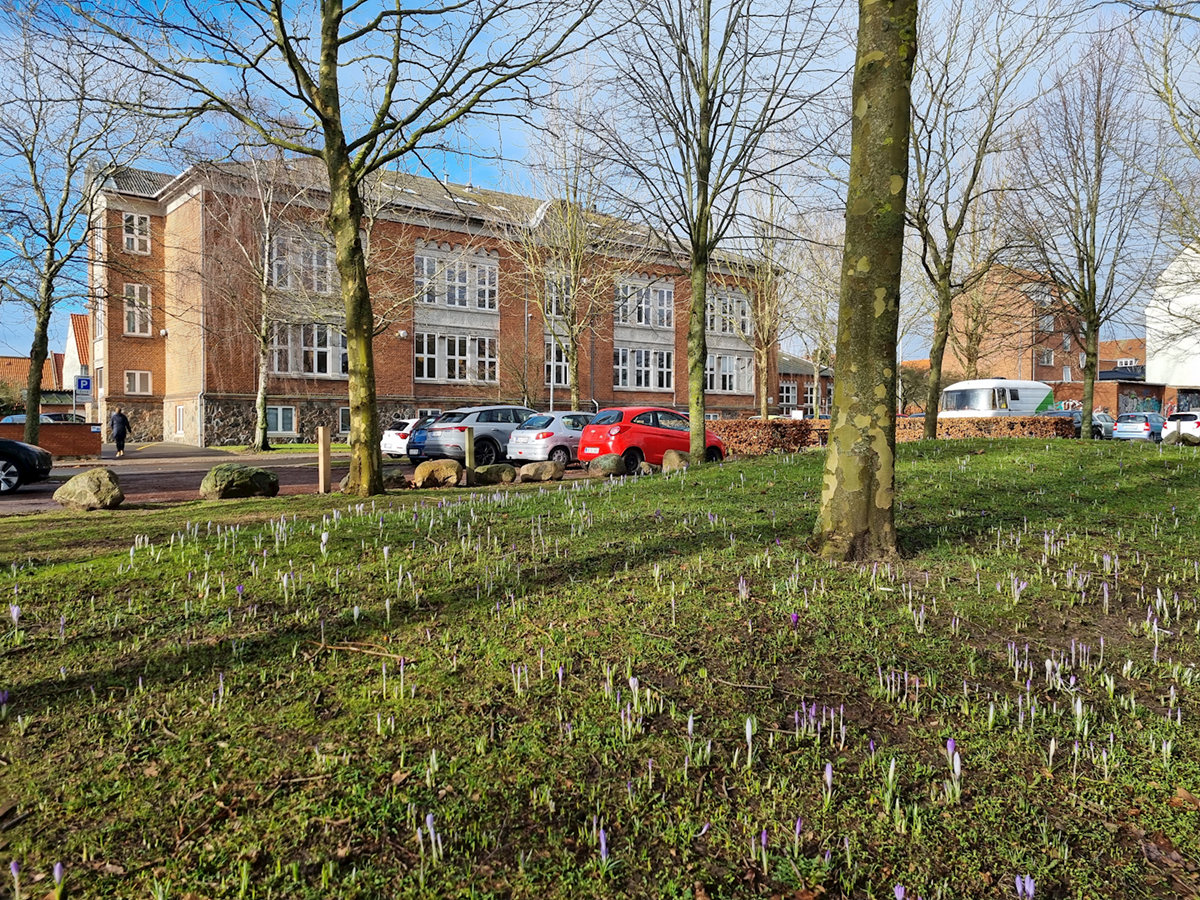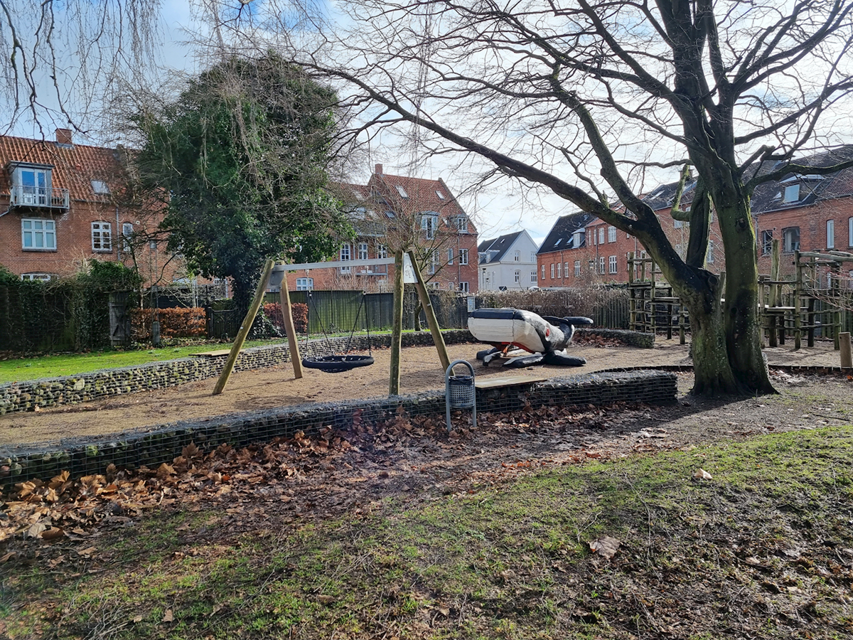 Et gårdanlæg med legeplads og basketballbane og et gavlmaleri i Tordenskjoldsgade bidrager til en variation i oplevelsen af kvarterets stringente struktur. Overfor anlægget ligger den tidligere skole tegnet af Viggo Norn.